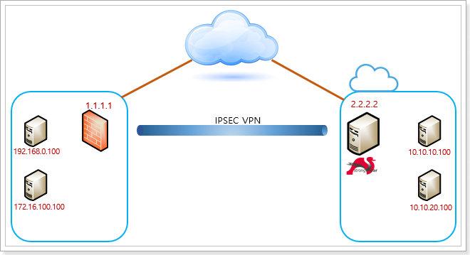 rightsubnet=192.168.0.0/24, 172.16.100.0/24 // Remote VPN 대역 IP